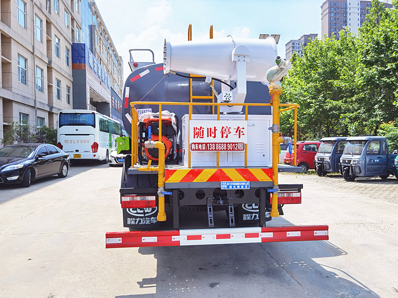 | 上裝配置:罐體采用國(guó)標(biāo)Q235碳鋼板制作,可選用30米、40米中型霧炮,罐體采用機(jī)器壓板一次性成型技術(shù),采用先進(jìn)旋邊機(jī),罐體包罐機(jī)工藝保證了罐體制作的精度和美觀。罐體厚度4mm,前后封頭5MM加厚型,罐體實(shí)際容積12立方(12噸),程力獨(dú)有烤漆工藝,多層底漆、防腐除銹,面漆噴涂。 功能齊全,配備前沖、后灑、側(cè)噴、綠化灑水炮,采用優(yōu)質(zhì)水泵,合理設(shè)計(jì)水路管道,氣控取力器,作業(yè)能力強(qiáng);采用柴油發(fā)電機(jī)大功率霧炮機(jī),噴灑距離選裝30-40米射程,運(yùn)用范圍廣泛。 |
